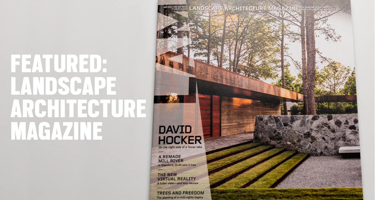 Winner of the 2015 ASLA Award of Excellence, is featured on the cover of Landscape Architecture Magazine's December 2015 Issue.